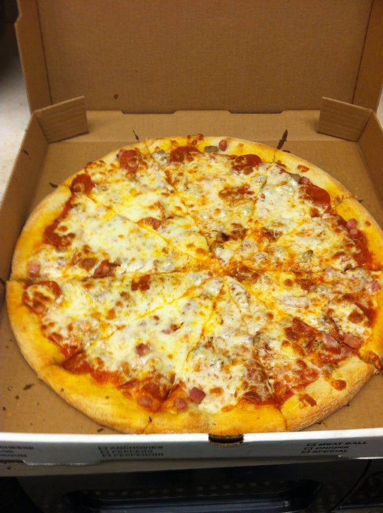 Comes with diced green peppers, sliced black olives, mushrooms and cheese